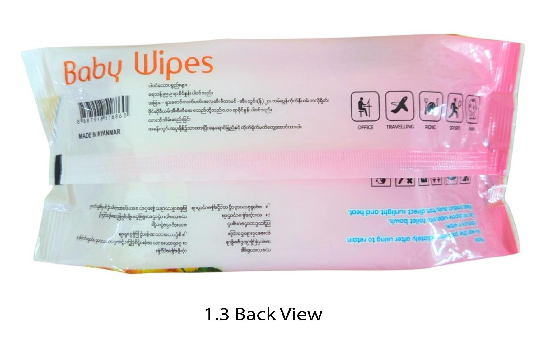 Baby Wipes ၏ ထုပ်ပိုးမှုဒီဇိုင်းကိုလျှောက်ထားခြင်းဖြစ်ပါသည်။ စက်မှုဒီဇိုင်းတွင်ပါရှိသော ရုပ်ပုံများ၊ စာသားများ၊ စကားလုံးများ၊ ကိန်းဂဏန်းများ၊ သင်္ကေတများ၊ Barcode များကို တစ်ဦးတည်းအသုံးပြုမှုနှင့် စပ်လျဉ်းသည့်အခွင့်အရေးကို တောင်းဆိုမှုမရှိကြောင်း တင်ပြအပ်ပါသည်။