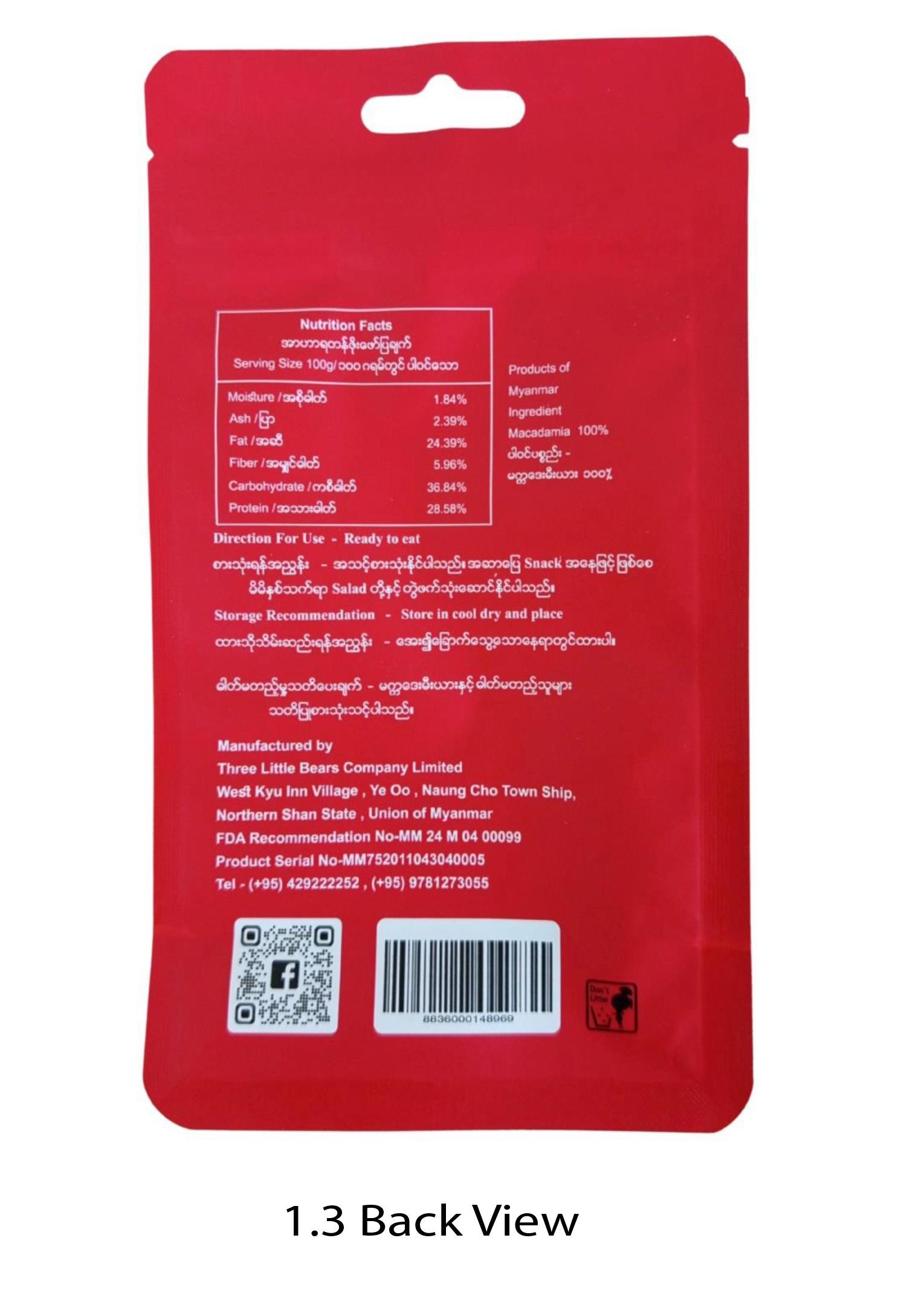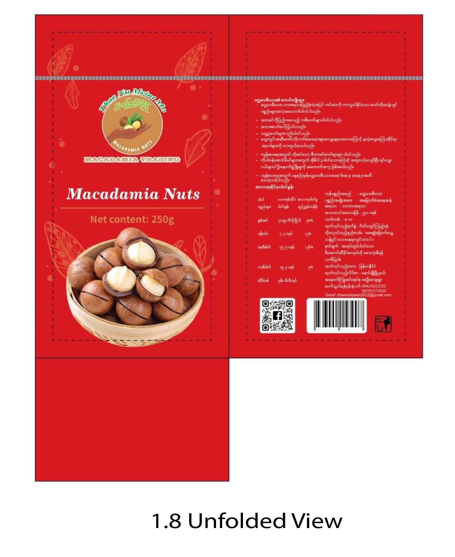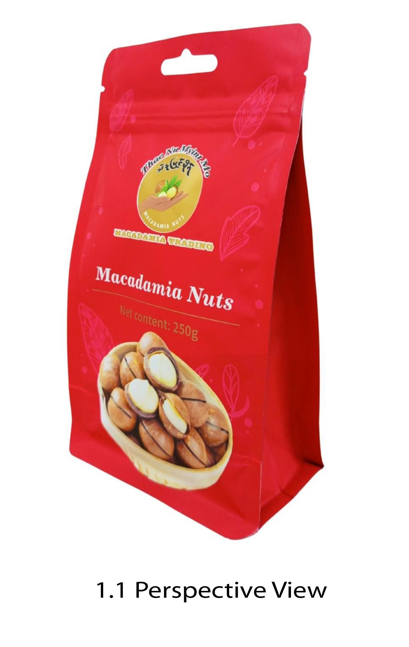 Macadamia Nuts ၏ထုပ်ပိုးမှုဒီဇိုင်းကို လျှောက်ထားခြင်းဖြစ်ပါသည်။ စက်မှုဒီဇိုင်းတွင်ပါရှိသော စကားလုံးများ၊ စာသားများ၊ ကိန်းဂဏန်းများ၊ သင်္ကေတများ၊ Barcode၊ QR Code များကို တစ်ဦးတည်းအသုံးပြုမှုနှင့်စပ်လျဉ်းသည့်အခွင့်အရေး တောင်းဆိုမှုမရှိကြောင်း တင်ပြအပ်ပါသည်။