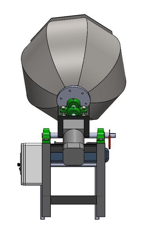 (IN) Mesin pencampur bumbu marning jagung dirancang untuk meningkatkan efisiensi dan konsistensi dalam proses pencampuran bumbu pada marning. Desainnya menggunakan sistem drum berputar horizontal dari stainless steel food grade yang digerakkan oleh motor listrik berdaya rendah dengan gearbox reduksi. Prinsip kerjanya sederhana: bahan marning dan bumbu dimasukkan ke dalam drum, kemudian drum berputar dengan kecepatan rendah (±20–40 rpm) untuk menghasilkan pencampuran yang merata tanpa merusak tekstur jagung. Setelah proses selesai, drum dapat dimiringkan untuk memudahkan pengosongan hasil campuran. Struktur mesin terdiri dari rangka utama, drum, motor listrik, dan tuas penggerak. Keunggulan utamanya adalah hasil campuran yang homogen, waktu proses singkat (3–5 menit per batch), serta tingkat higienitas tinggi karena minim kontak tangan. Desain ini juga dapat dilengkapi inovasi seperti pengatur kecepatan otomatis guna menyesuaikan konfigurasi pencampuran dengan karakteristik produk. Mesin ini sangat cocok untuk industri kecil hingga menengah yang memproduksi marning secara massal namun tetap menjaga kualitas rasa dan kebersihan produk. Mesin pencampur bumbu marning jagung berguna untuk mencampur bumbu kering maupun cair secara merata pada produk marning, sehingga menghasilkan cita rasa yang konsisten dan berkualitas tinggi. Penggunaan mesin ini membantu mempercepat proses produksi dibandingkan pencampuran manual, menghemat tenaga kerja, serta menjaga kebersihan karena bahan tidak banyak bersentuhan dengan tangan. Mesin ini juga memastikan setiap butiran marning mendapatkan lapisan bumbu yang sama, sehingga rasa, aroma, dan warna lebih seragam. Selain itu, mesin dapat digunakan untuk berbagai jenis produk kering lainnya seperti keripik, kacang, atau snack ringan dengan prinsip kerja serupa. Dengan adanya fitur pengatur kecepatan dan kemiringan drum, pengguna dapat menyesuaikan intensitas pencampuran sesuai kebutuhan bahan, menjadikan mesin ini sangat berguna bagi pelaku usaha kecil hingga menengah dalam meningkatkan kapasitas produksi, efisiensi waktu, serta menjaga standar mutu produk secara berkelanjutan.