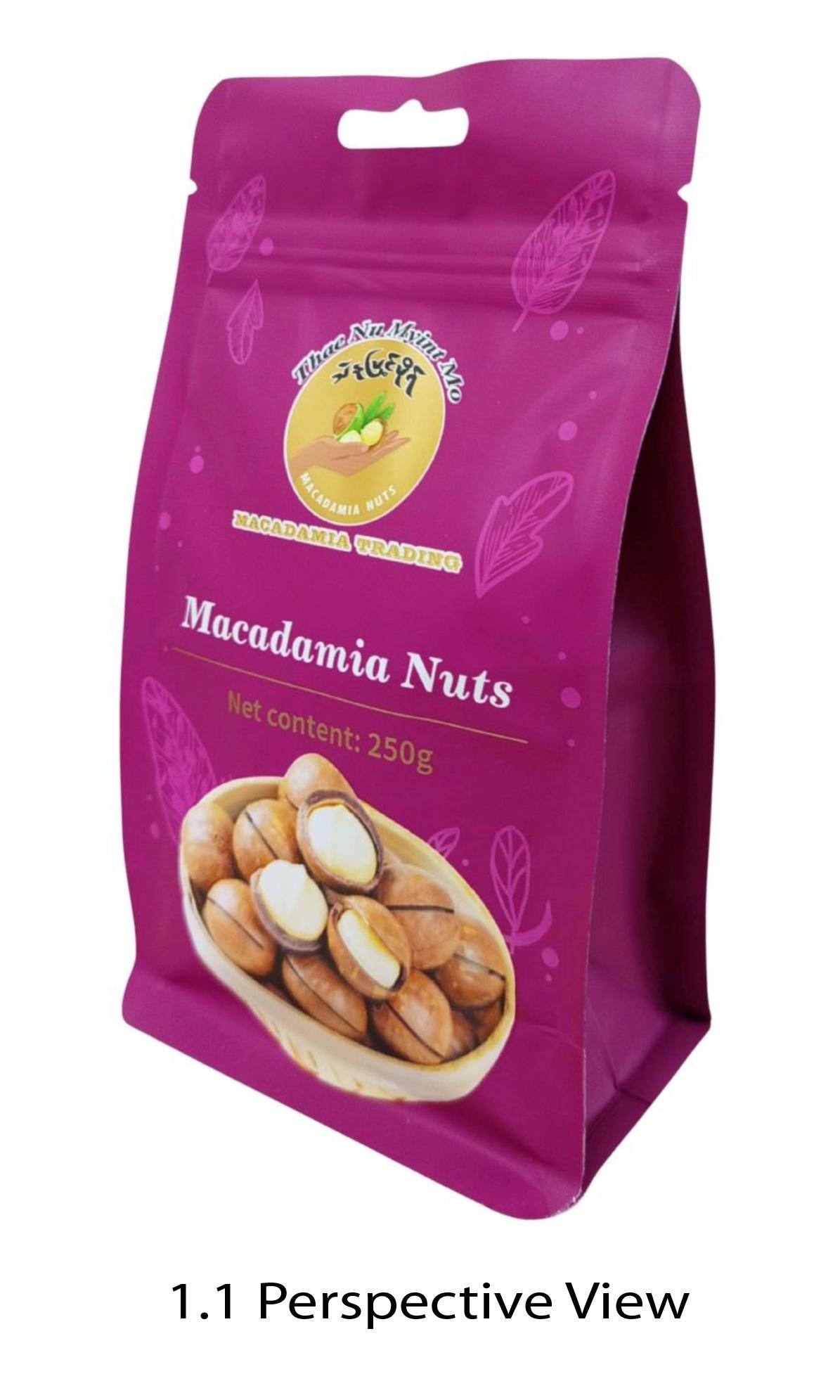 Macadamia Nuts ၏ထုပ်ပိုးမှုဒီဇိုင်းကို လျှောက်ထားခြင်းဖြစ်ပါသည်။ စက်မှုဒီဇိုင်းတွင်ပါရှိသော စကားလုံးများ၊ စာသားများ၊ ကိန်းဂဏန်းများ၊ သင်္ကေတများ၊ Barcode၊ QR Code များကို တစ်ဦးတည်းအသုံးပြုမှုနှင့်စပ်လျဉ်းသည့်အခွင့်အရေး တောင်းဆိုမှုမရှိကြောင်း တင်ပြအပ်ပါသည်။