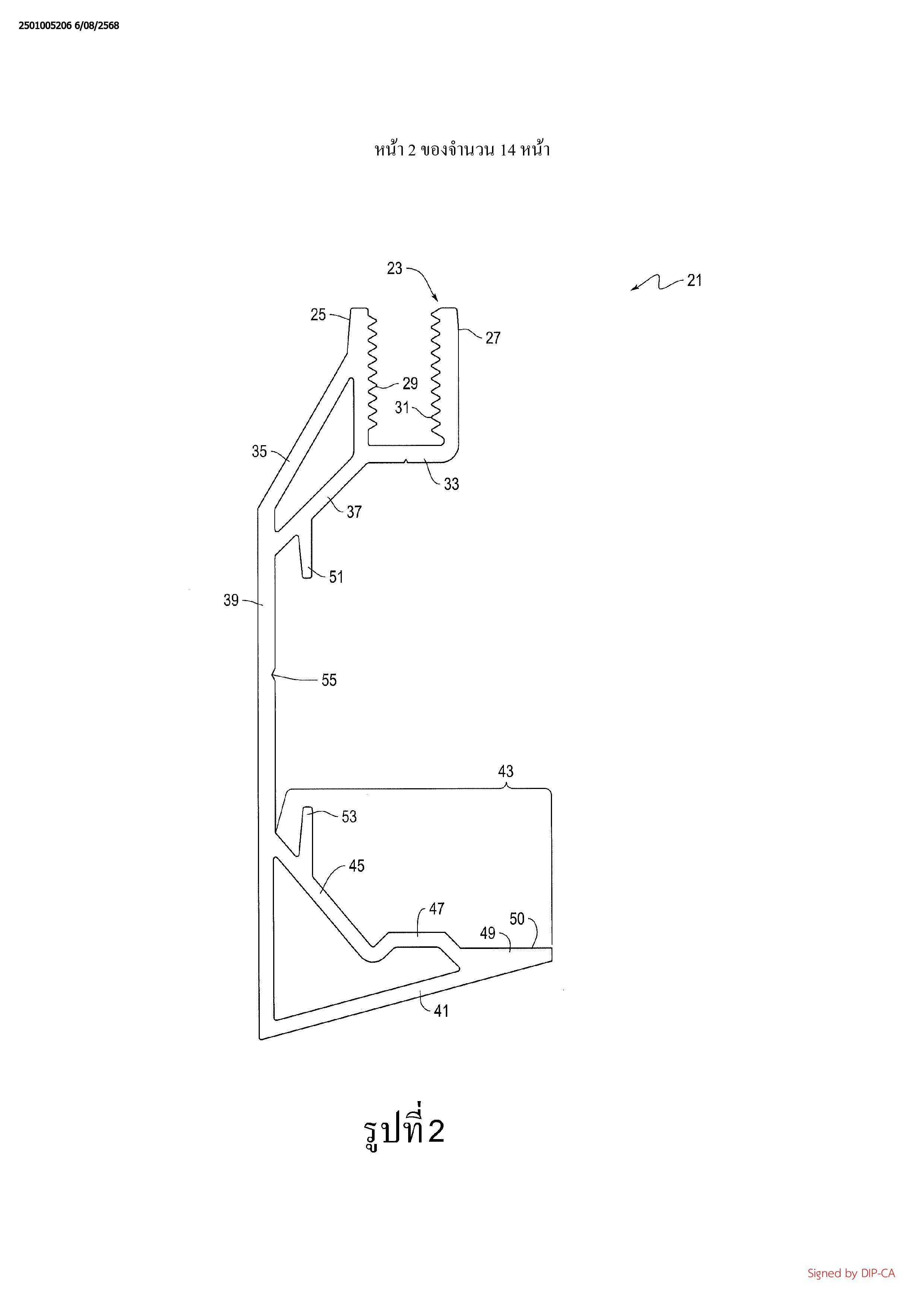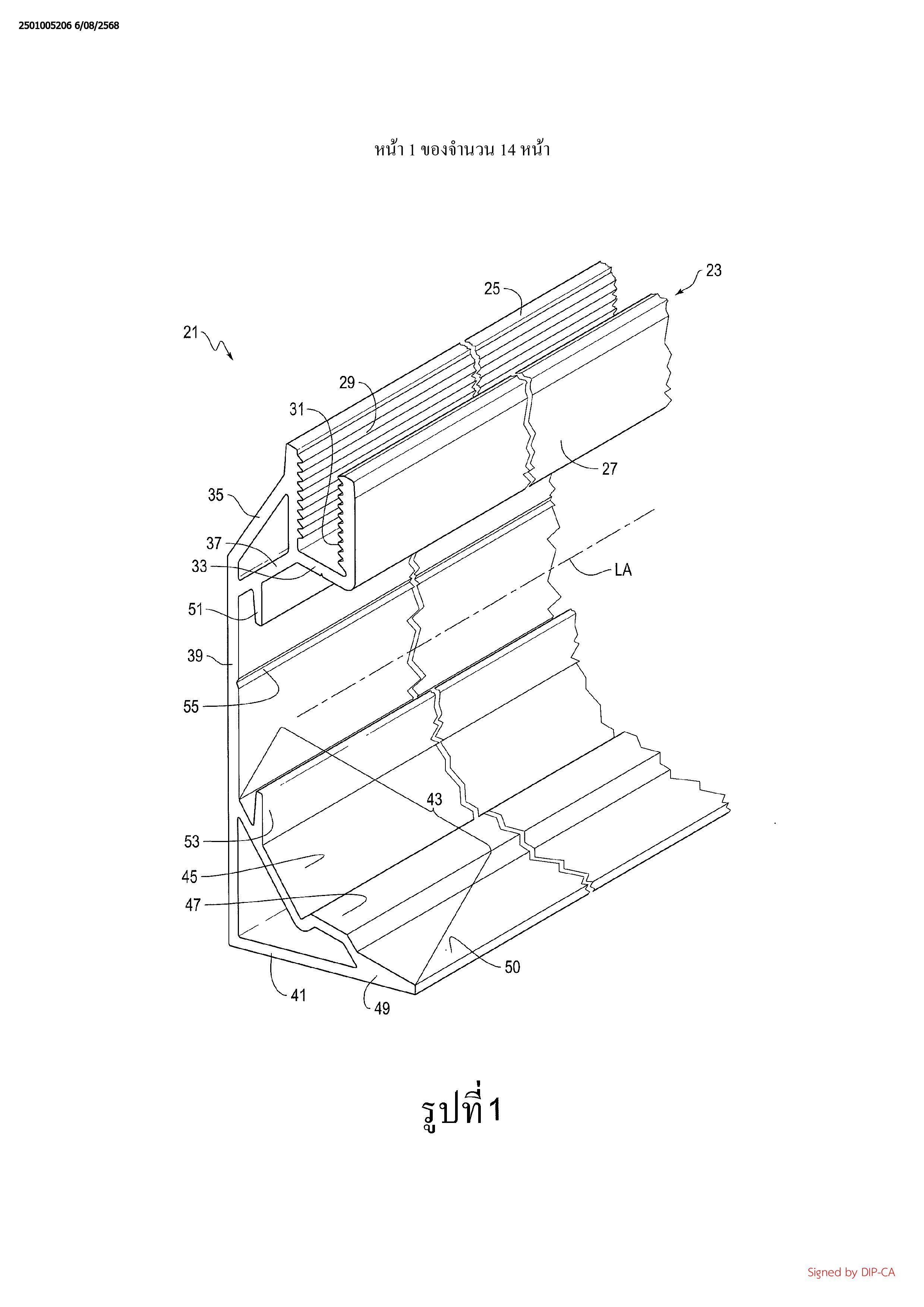 ชิ้นส่วนกริดเพดานแบบเรียวยาวที่รวมถึง (1) ส่วนรองรับชิ้นส่วนที่มีเกลียวที่มีคู่ของผนัง