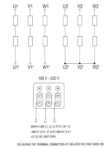 predetermined connection patterns so as to allow the induction motor to be operated in a respective
