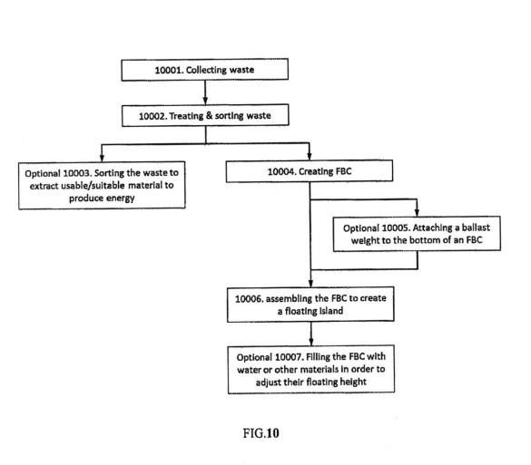 A floating territory is made of at least two floatable building componens having the shape of a prism with a regular polygon base. such as a triangle. a squarc, a penfagon a hexagon etc. combined with sliding doletails ard dovetarl grooves for sliding attachment to neighbonng construction elemems. The attachments allow the floatable building components to slide vertically relative to each other, thereby permitting the floatng territory to follow the uprward and dowmward movement of the waves. A method of cornening floating ocean waste into structures. in particular, floating territories is also provided.