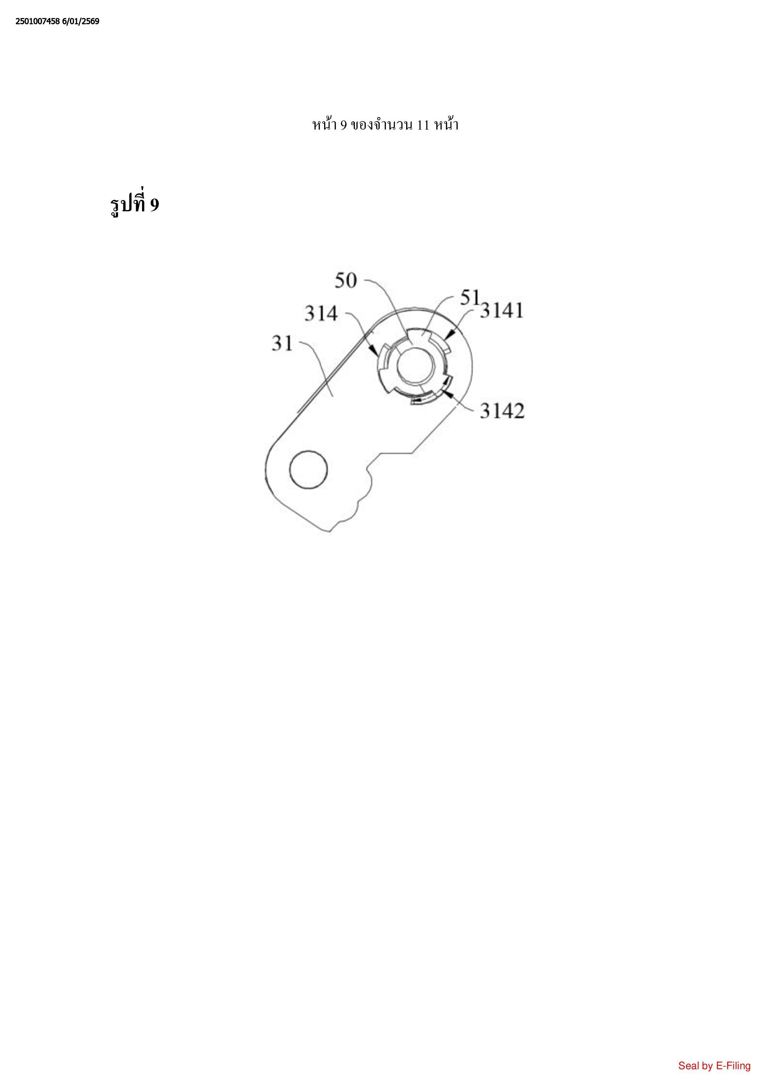 ด้วยส่วนเว้า (3141); ผนังภายนอกของเพลาหมุนที่หนึ่ง (50) ถูกจัดให้มีด้วยส่วนยื่น (51), และส่วนยื่น