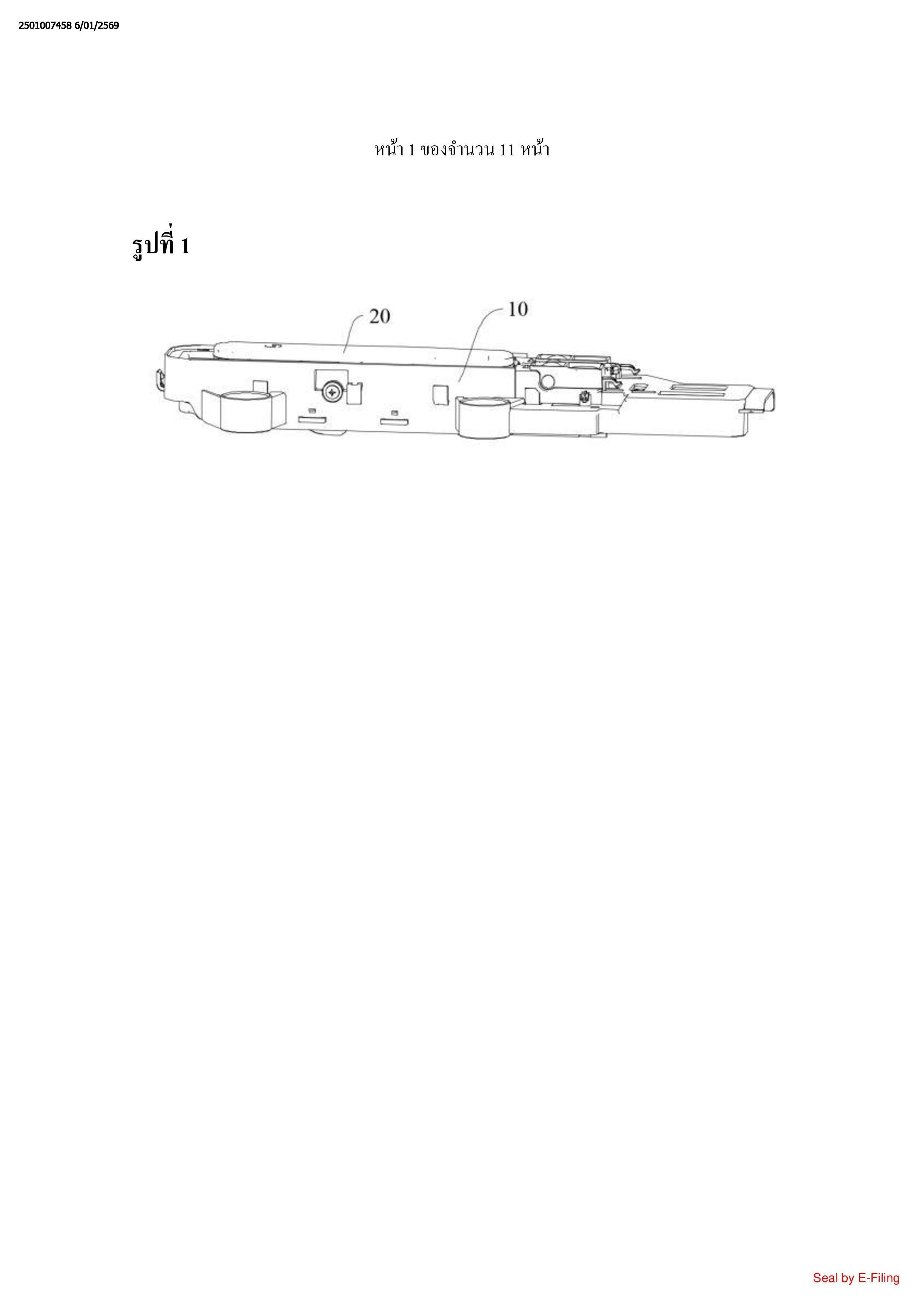 ชิ้นประกอบแขนเหวี่ยง (30) ซึ่งประกอบรวมด้วยตัวเชื่อมต่อ (31), แขนเหวี่ยงที่หนึ่ง (32),