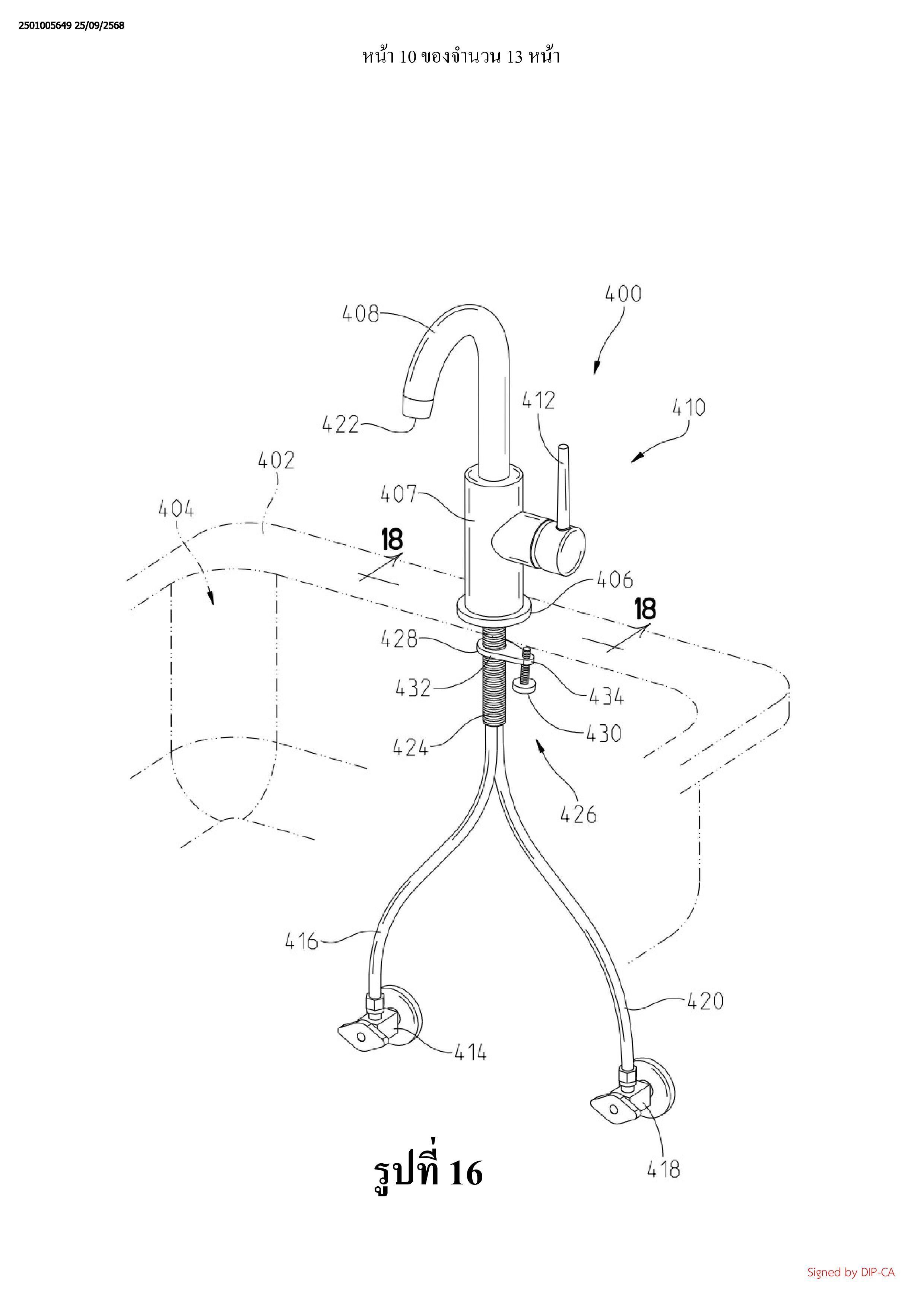 พื้นผิวที่หนึ่งของแท่นติดตั้งไปยังพื้นผิวที่สองของแท่นติดตั้ง ชุดชิ้นส่วนประกอบของก๊อกน้ำ