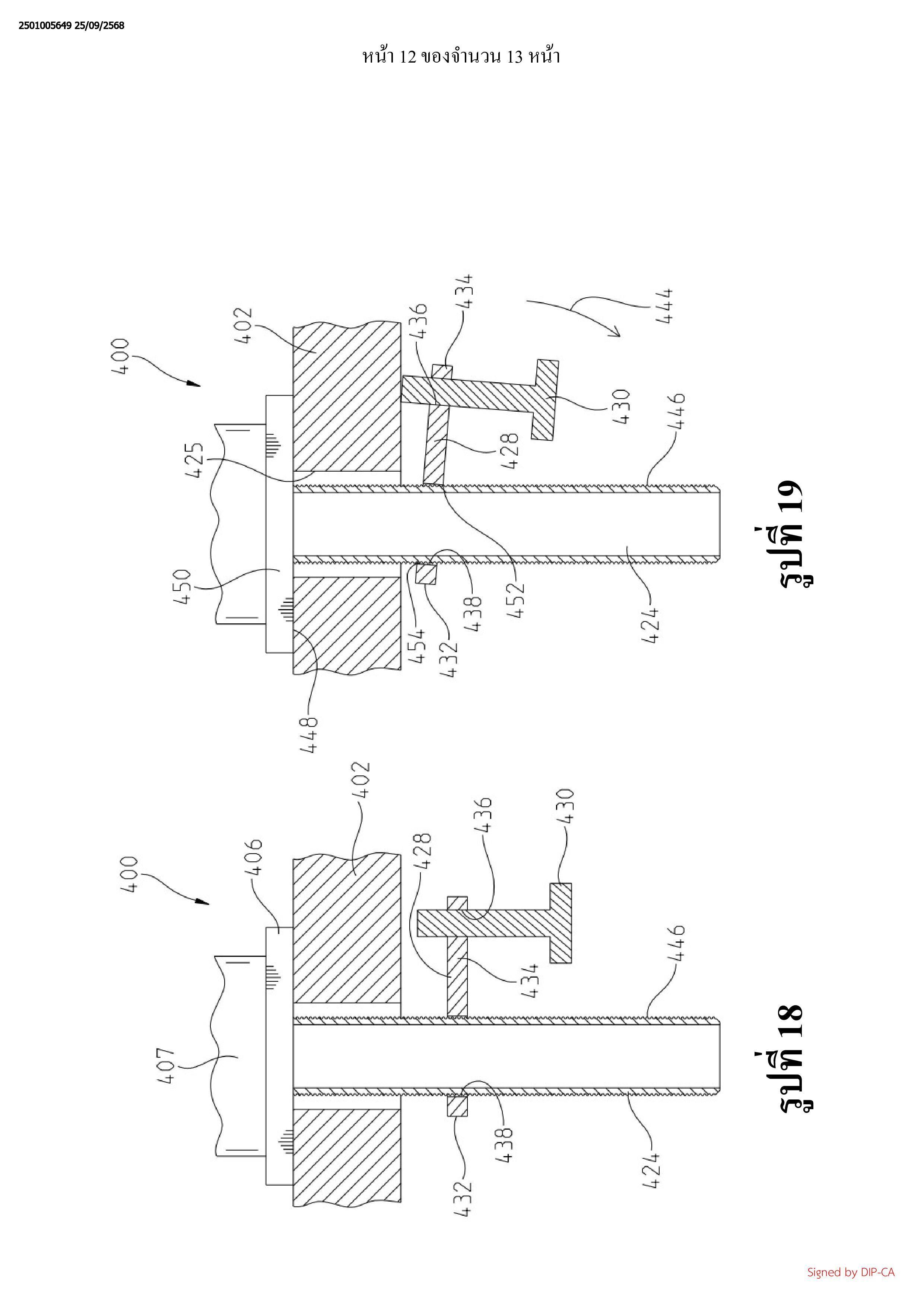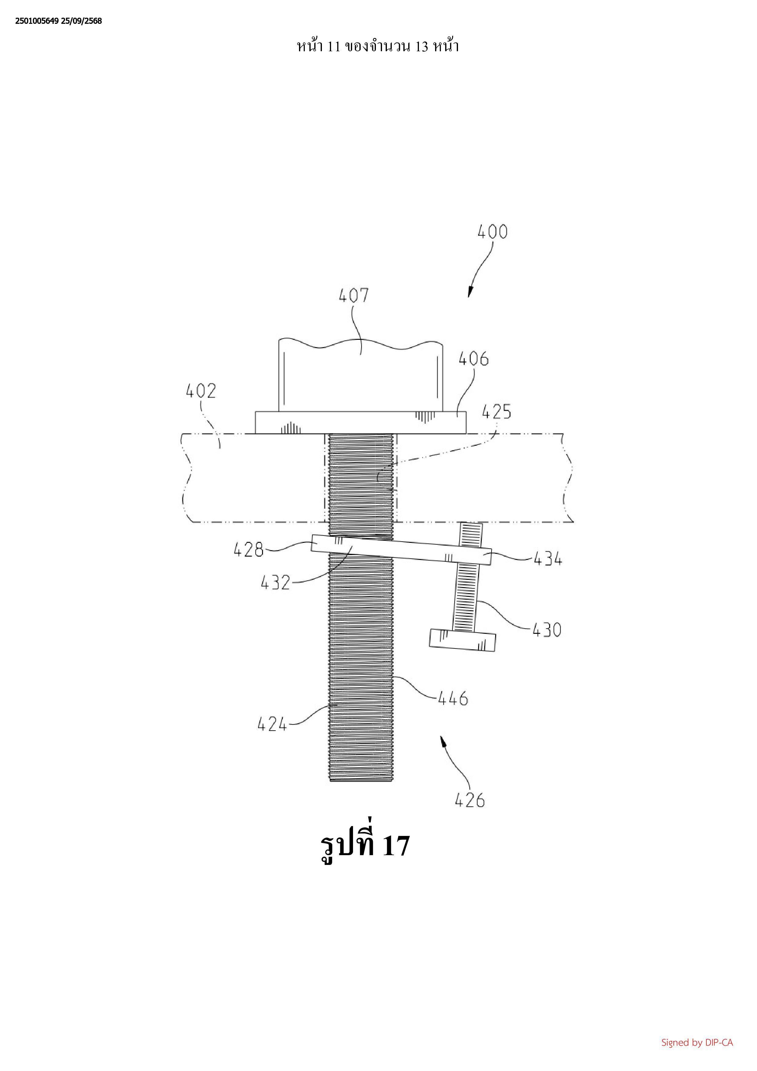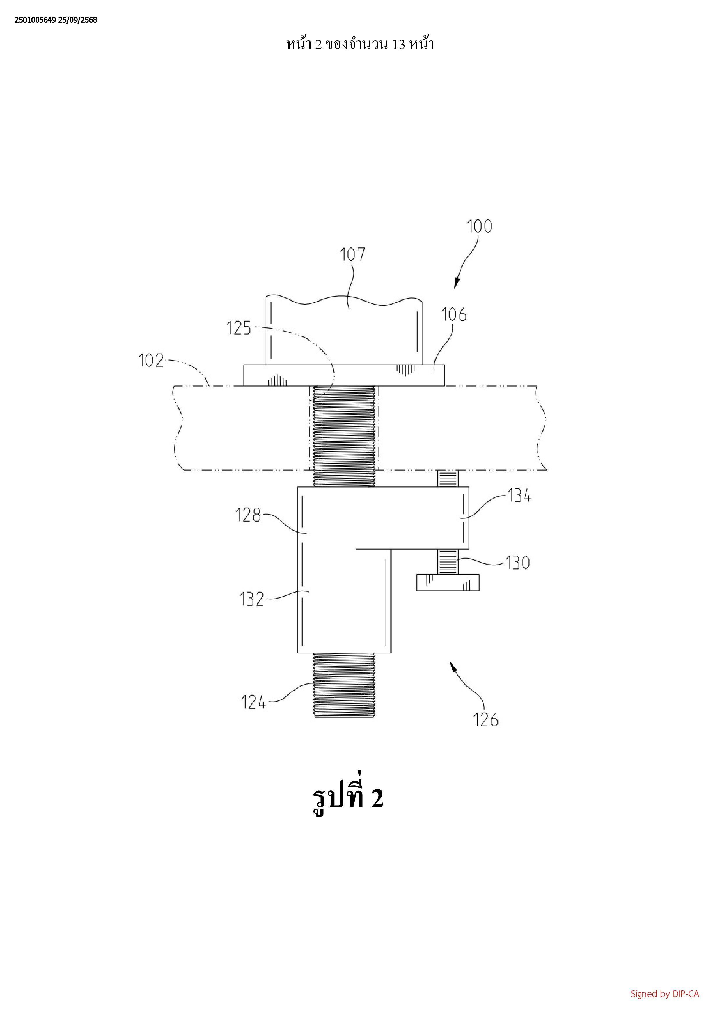 พื้นผิวที่หนึ่ง แท่งติดตั้งถูกเชื่อมต่อเข้ากับฐานและถูกสอดเข้าไปในเส้นทางผ่าน แท่งติดตั้งซึ่งมีพื้นผิว