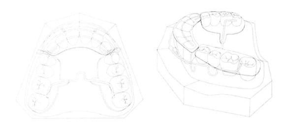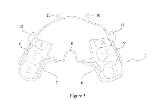 ເຄື່ອງມີດັດແຂ້ວເພື່ອດຶງແຂ້ວດ້ານໜ້າເບື້ອງເທິງໃຫ້ສວດອອກມາ ເພື່ອສ້າງຄວາມສົມດູນໃຫ້ກັບໃບໜ້າປະກອບດ້ວຍອຸປະກອນສ່ວນທີ 1 ເຂິ່ງປະກອບດ້ວຍແຜ່ນເທິງ (5) ທີ່ຢູ່ດ້ານຫຼັງຂອງແຂ້ວທາງໜ້າເບື້ອງເທິງ 6 ເຫຼັ້ມ ແລະ ຍຶດຕິດຢ່າງໜາແໜ້ນດ້ວຍກາວຕິດແຂ້ວ ໂດຍມີຂໍເກາະສ່ວນທີ 2 (4) ຕິດຢູ່ກັບແຜ່ນເທິງ (5) ຂອງອຸປະກອນສ່ວນທີ 1 ແລະ ອຸປະກອນສ່ວນທີ 2 (2) ເຊິ່ງປະກອບດ້ວຍແຜ່ນຂວາ (6) ແລະ ແຜ່ນຊ້າຍ (7) ປົກຫຸ້ມແຂ້ວຫຼັງເບື້ອງເທິງທັງໝົດ ໂດຍລວມເສັ້ນທີ 1(8) ຕິດຢູ່ກັບແຜ່ນຂວາ (6) ແລະ ແຜ່ນຊ້າຍ (7) ແລະ ລວດເສັ້ນທີ 2 (9) ເຊິ່ງເປັນເສັ້ນລວດສະແຕນເລດແບບສະປີງແຂງ ທີ່ແຂ້ວກົດເຫຼັ້ມນ້ອຍເຮັດເປັນຮູບ U-Loop ຊ້າຍ (12) ແລະ U-Loop (13) ໃນຂະນະທີປາຍທັງສອງຂ້າງຂອງລວດຕິດກັບແຜ່ນຂວາ (6) ແລະ ແຜ່ນຊ້າຍ (7)