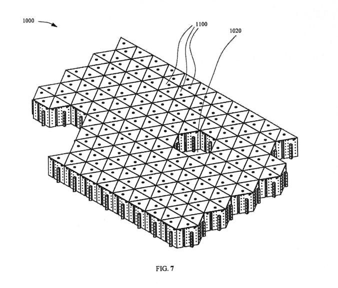 ດິນແດນຂົງເຂດຟູນໍ້າໜຶ່ງແມ່ນໄດ້ເຮັດຈາກຢ່າງນ້ອຍສອງສ່ວນປະກອບກໍ່ສ້າງຟູນໍ້າມີຮູບຮ່າງຂອງແກ້ວເຈັດສີໜຶ່ງດ້ວຍພື້ນຖານຮູບຫຼາຍລ່ຽມປົກກະຕິໜຶ່ງ,ເຊັ່ນວ່າ ຮູບສາມແຈໜຶ່ງ, ຮູບຈະຕຸລັດໜຶ່ງ, ຮູບຫ້າແຈໜຶ່ງຮູບ, ຮູບຫົກແຈໜຶ່ງ, ແລະ ອື່ນຯ ຖືກປະສົມປະສານດ້ວຍການເລື່ອນເຊື່ອມເຂົ້າຫາກັນ ແລະ ຮ່ອງເຊື່ອມເຂົ້າຫາກັນສໍາລັບການເລື່ອນແຊກຫາອົງປະກອບກໍ່ສ້າງໃກ້ຄຽງ. ຕົວແຊກອະນຸຍາດສ່ວນປະກອບກໍ່ສ້າງຟູນໍ້າ ເພື່ອເລື່ອນໂດຍທາງຕັ້ງພົວພັນເຊິ່ງກັນ ແລະ ກັນ, ດັ່ງນ້ນ ການອະນຸຍາດດິນແດນຂົງເຂດຟູນໍ້າເພື່ອຕິດຕາມການເຄື່ອນຍ້າຍຂື້ນເທິງ ແລະ ລົງລຸ່ມຂອງຄື້ນ. ວິທີການໜຶ່ງຂອງການຫັນປ່ຽນເສດເຫຼືອມະຫາສະໝຸດ ຟູນໍ້າໄປເປັນໂຄງສ້າງ, ໂດຍສະເພາະ, ດິນແດນຂົງເຂດຟູນໍ້າແມ່ນຖືກສະໜອງພ້ອມກັນ.