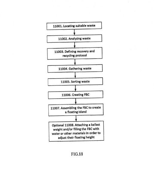 A floating territory is made of at least two floatable building componens having the shape of a prism with a regular polygon base. such as a triangle. a squarc, a penfagon a hexagon etc. combined with sliding doletails ard dovetarl grooves for sliding attachment to neighbonng construction elemems. The attachments allow the floatable building components to slide vertically relative to each other, thereby permitting the floatng territory to follow the uprward and dowmward movement of the waves. A method of cornening floating ocean waste into structures. in particular, floating territories is also provided.