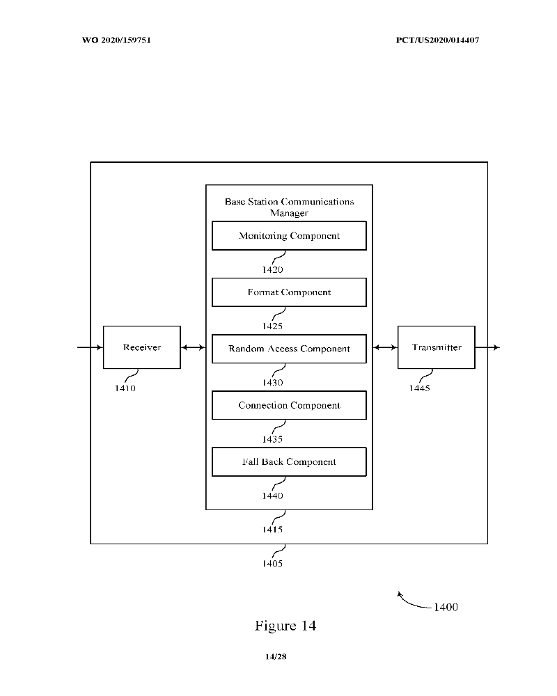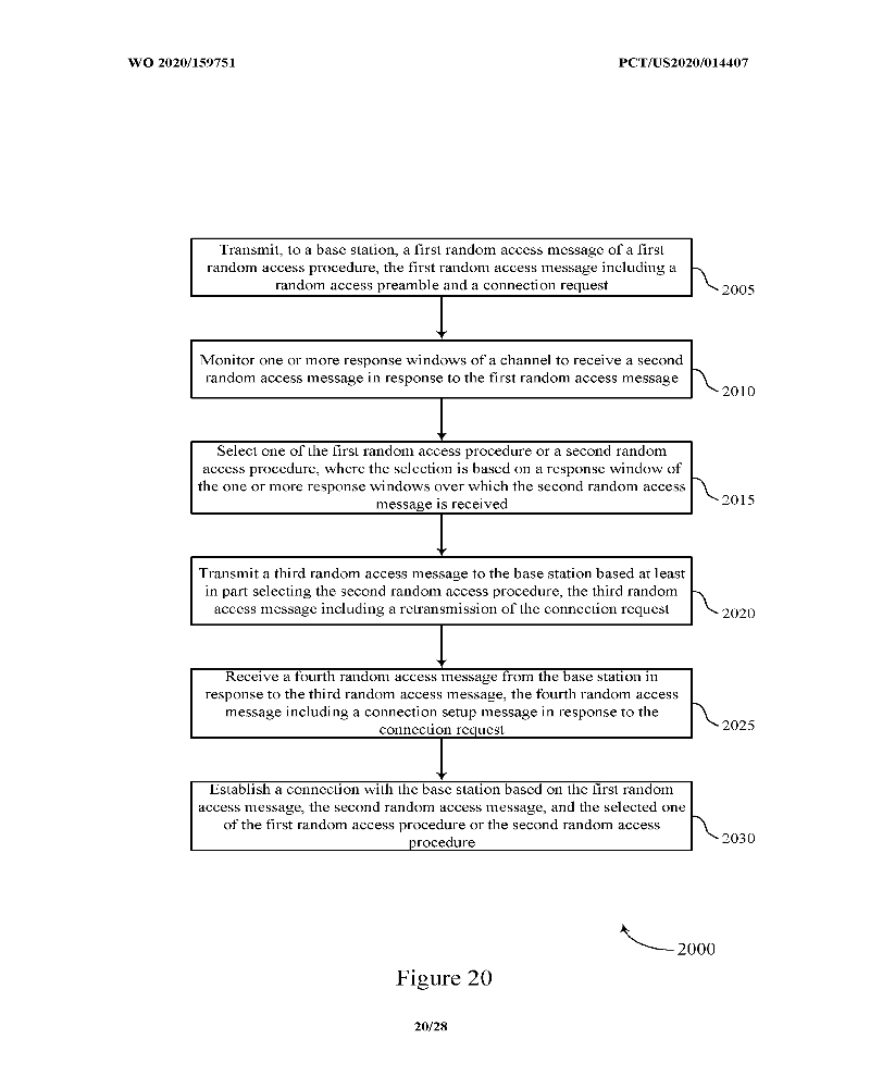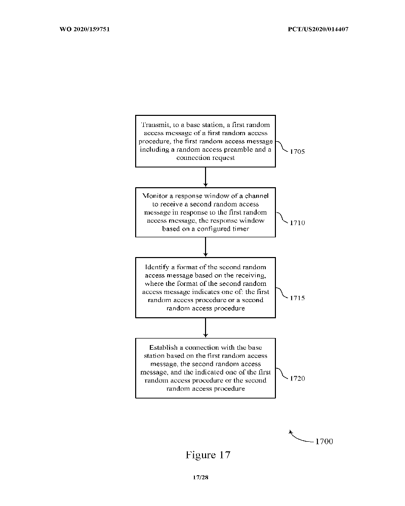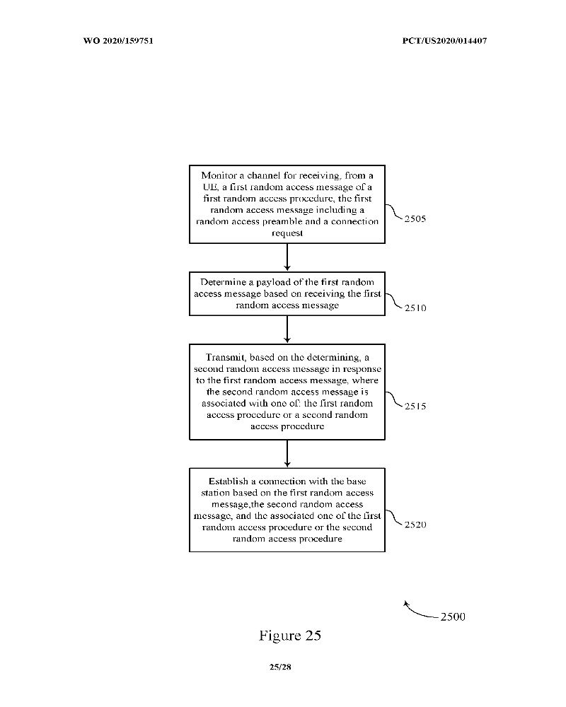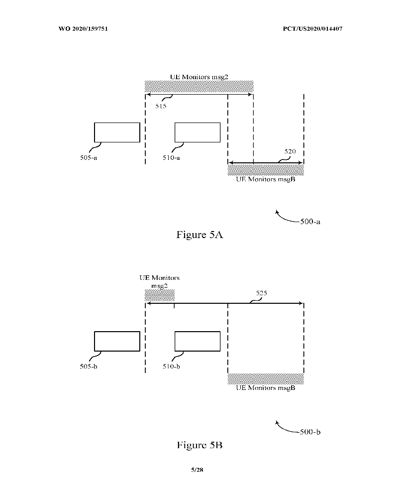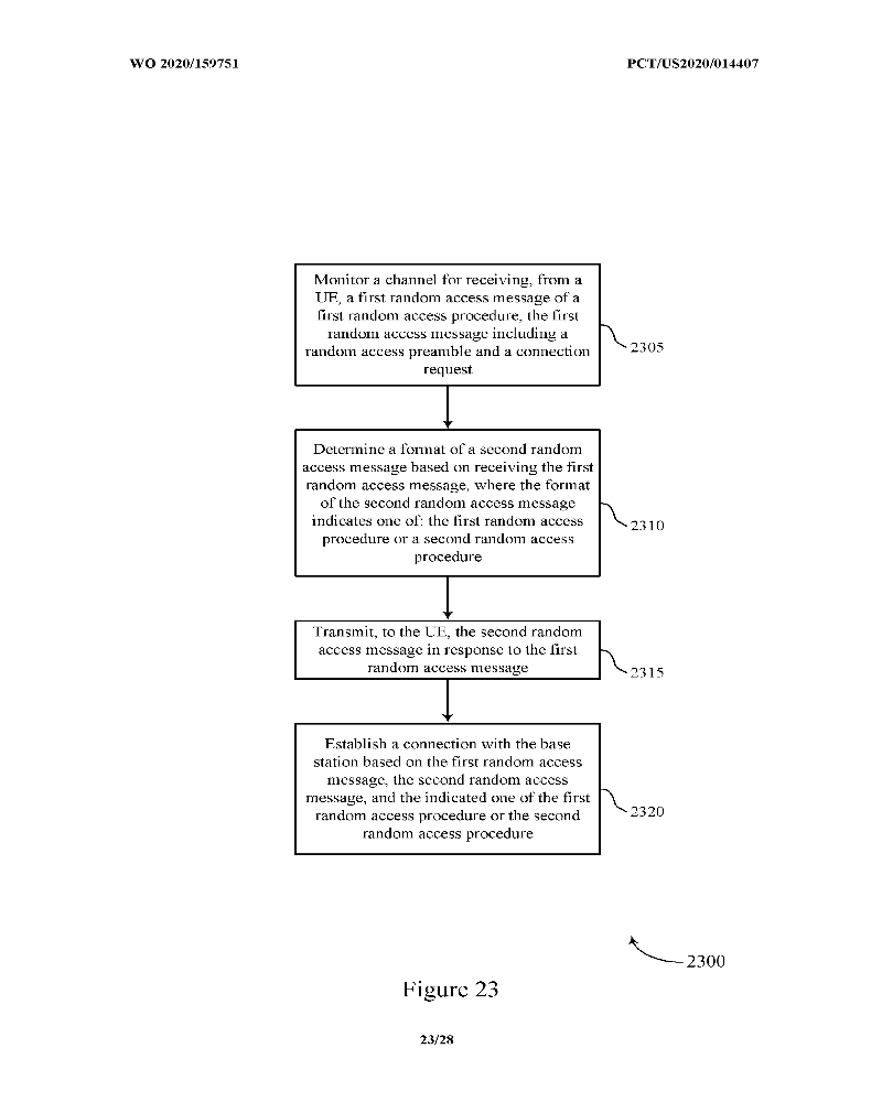 (EN) ABSTRACT RANDOM ACCESS PROCEDURE FALLBACK This disclosure provides systems, methods and apparatus for wireless communications that support fallback from a 2-step to a 4-step random access procedures. A user equipment (UE) may establish a connection with a base station using a random access procedure. The random access procedure may be a 2-step random access procedure and reduce a number of handover exchange messages. The 2-step random access procedure may include the UE transmitting, to the base station, a first random access message including a preamble and a payload. In some implementations, the base station may receive the preamble but fail to receive or decode the payload. The random access procedure may utilize the received preamble information instead of performing retransmission of the first random access message. The base station may transmit a second random access message to the UE indicating, explicitly or implicitly, a fallback to a 4-step random access procedure for connection establishment. Fig. 4 127
