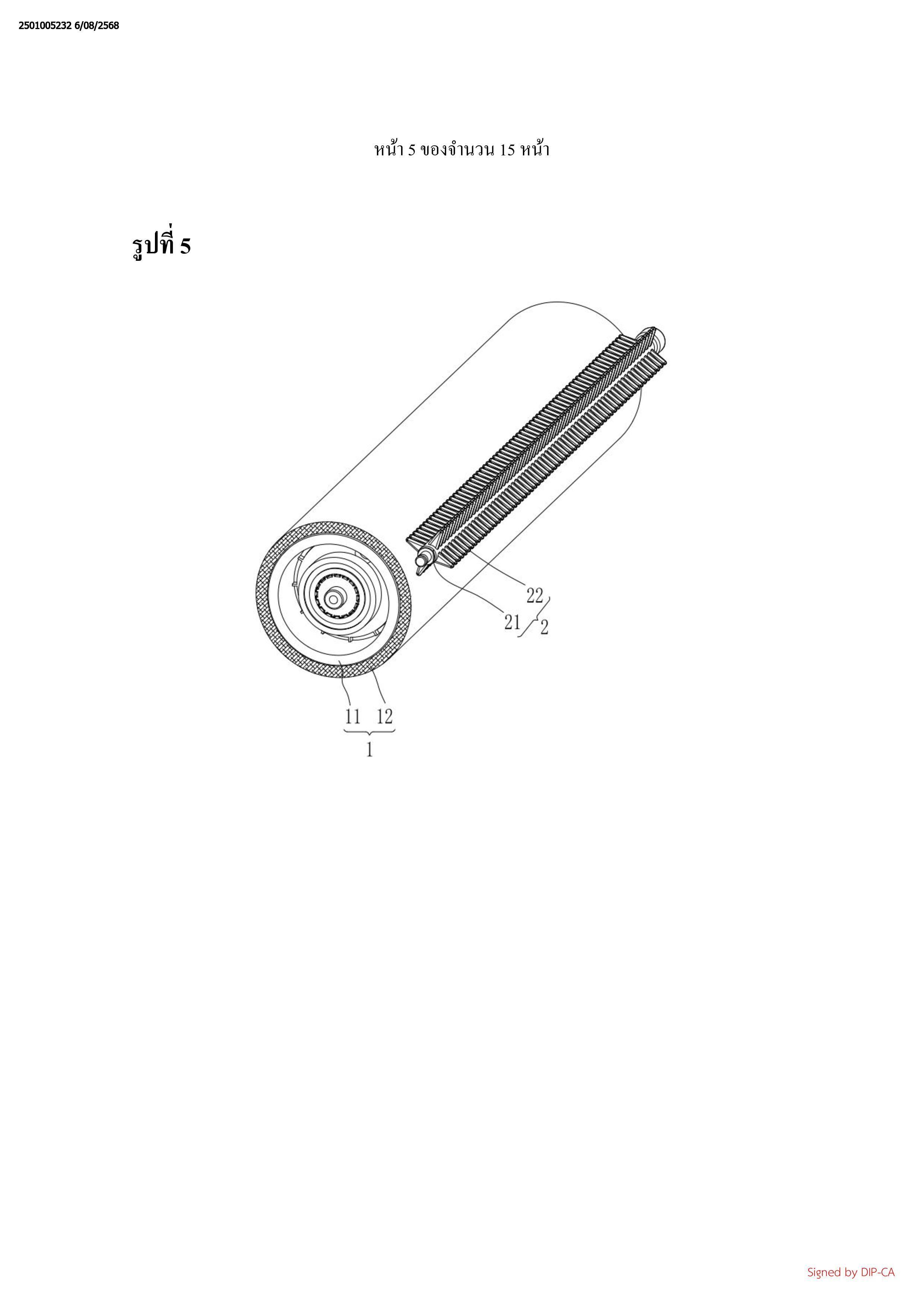 หัวถูพื้นแบบลูกกลิ้ง (1), ซึ่งประกอบรวมด้วยลำตัวลูกกลิ้ง (11) และชั้นถูพื้น (12) ที่ถูก