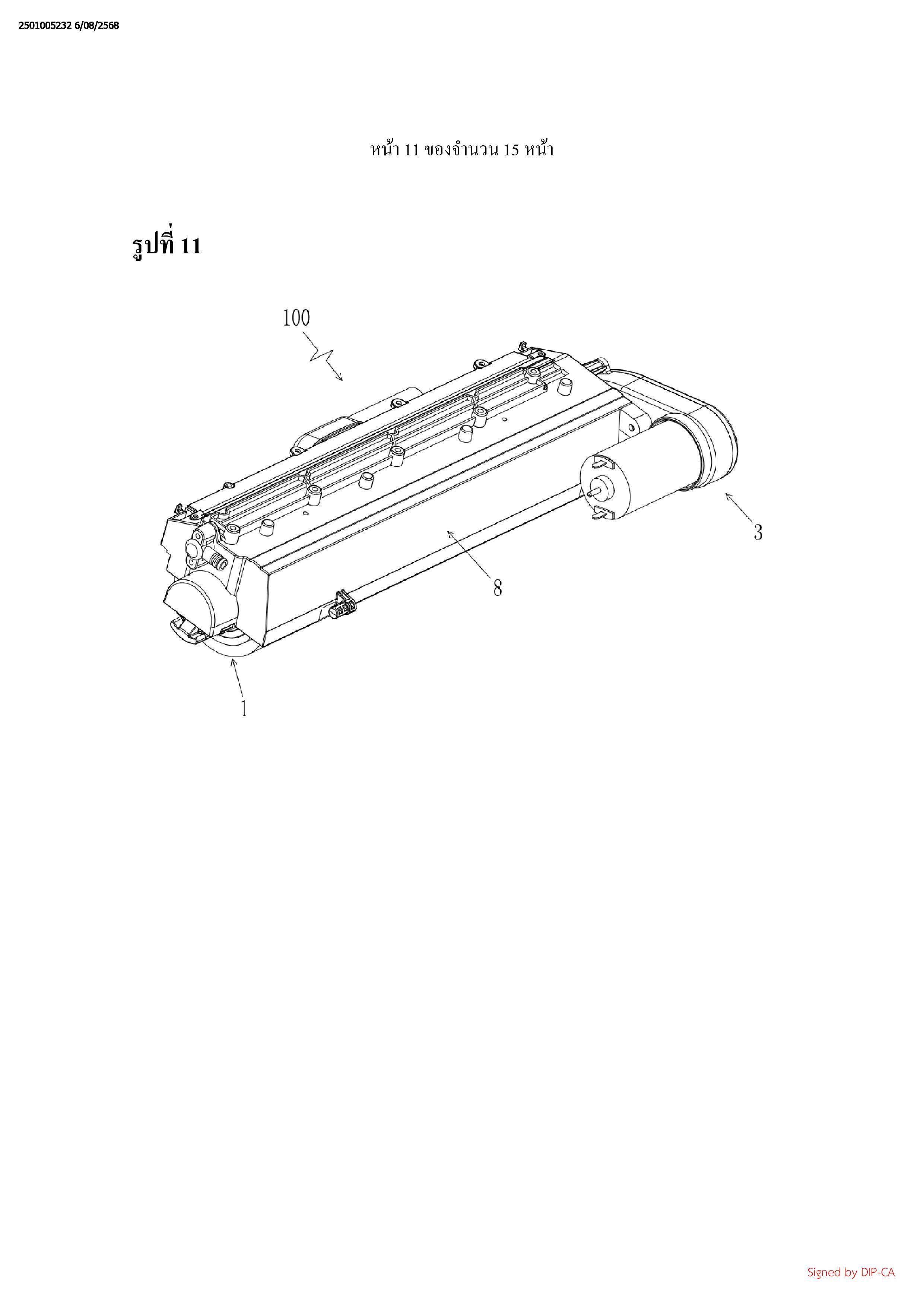ชิ้นส่วนขับเคลื่อน (3), โดยที่ขึ้นส่วนขับเคลื่อน (3) ขับเคลื่อนทั้งหัวถูพื้นแบบลูกลิ้ง (1) และแท่งทำ